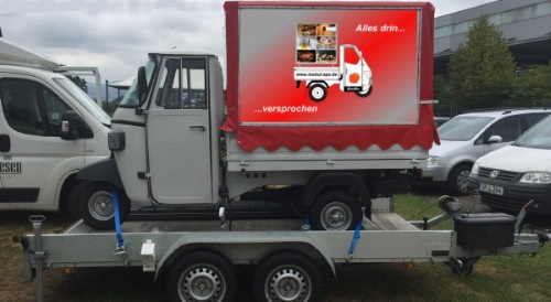 Wir kommen mit unserer APE als Eyecatcher auf ihr Fest. Die verschiedenen Module können Sie nach Belieben dazu buchen. Getränkeanhänger, Grill, Zelte usw. Oder buchen Sie gleich unser Sorglos-Paket mit dem rundum Catering-Service getreu unserem Motto: